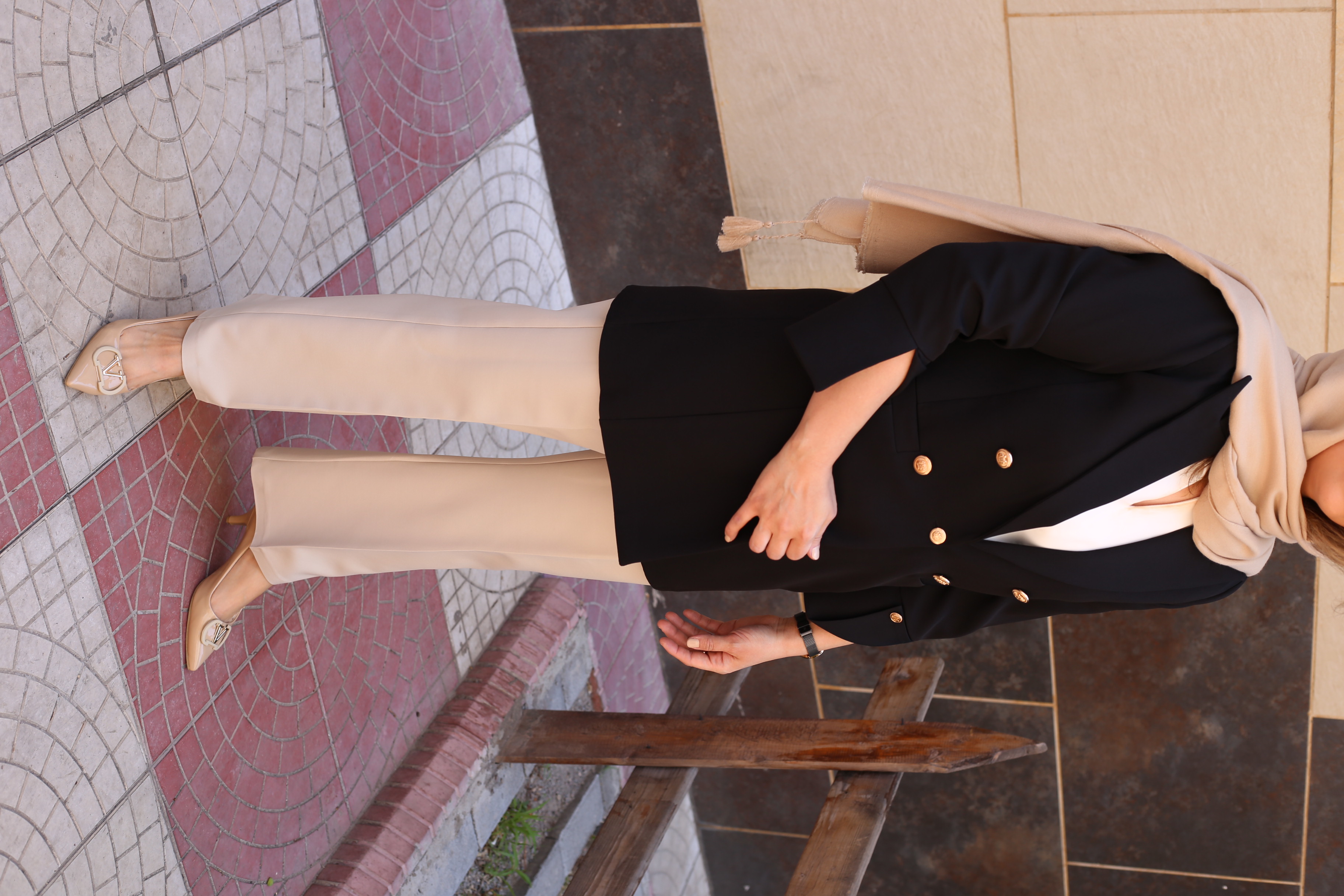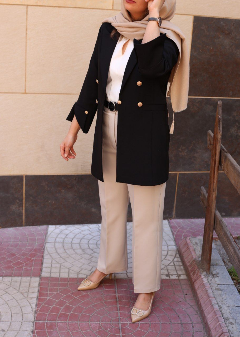 نسرین خراج کالکشن تابستان ۱۴۰۳ معرفی کت: کت رز بلک،یه کت کلاسیک و بسیار خوش کوپ و کاربردی مخصوص کلاسیک پسندان با داشتن این کت به راحتی میتونید ست کلاسیک،اسپرت و حتی مهمانی بزنید به نظرم از اون کت هایی که باید تو کمد هر خانم موجود باشه کت کاملا برش خورده و اندامی هست برای کوپ بهتر کار لایی کشی شده،جیب ها نمایی و از دکمه ها فلزی بسیار با کیفیت وارداتی استفاده شده است جنس کت: کرپ سوپررر مازراتی گرم بالا تضمینی قد کت: ۷۵